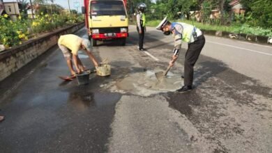 MURATARA, Bongkarmedia Untuk menghindari kecelakaan pengguna jalan lintas sumatera (Jalinsum), Satlantas Polres Muratara lakukan tambal jalan yang berlobang di Kelurahan…